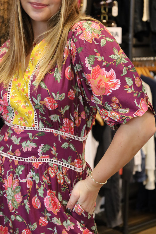 PUFF SLEEVE FLORAL TIERED DRESS