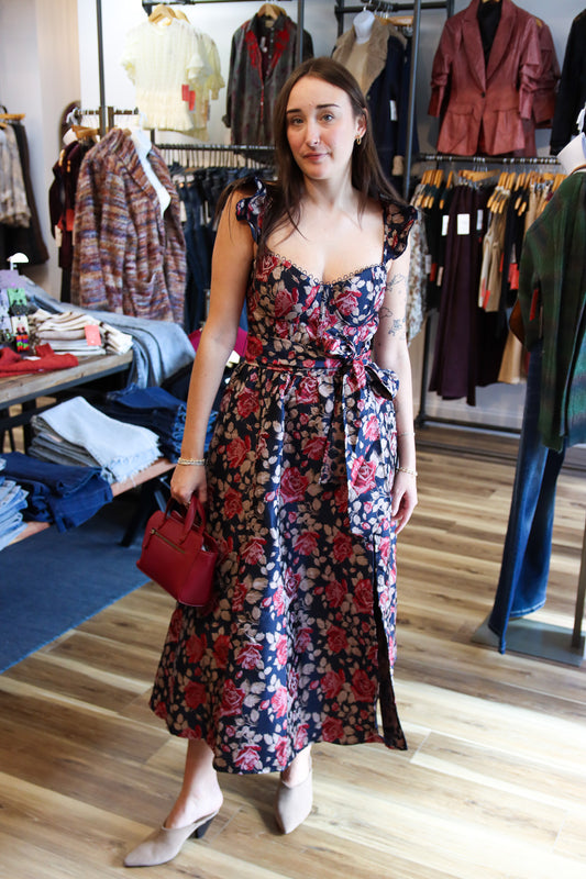 FLORAL SEQUIN EMB MIDI DRESS