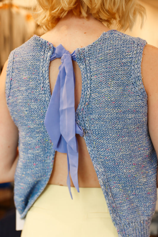 JOHN & JENN “MARTINO” BOW BACK SLEEVELESS SWEATER