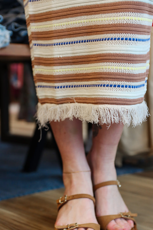 JOHN & JENN “HUNTER” KNIT FRINGE DETAIL MAXI DRESS