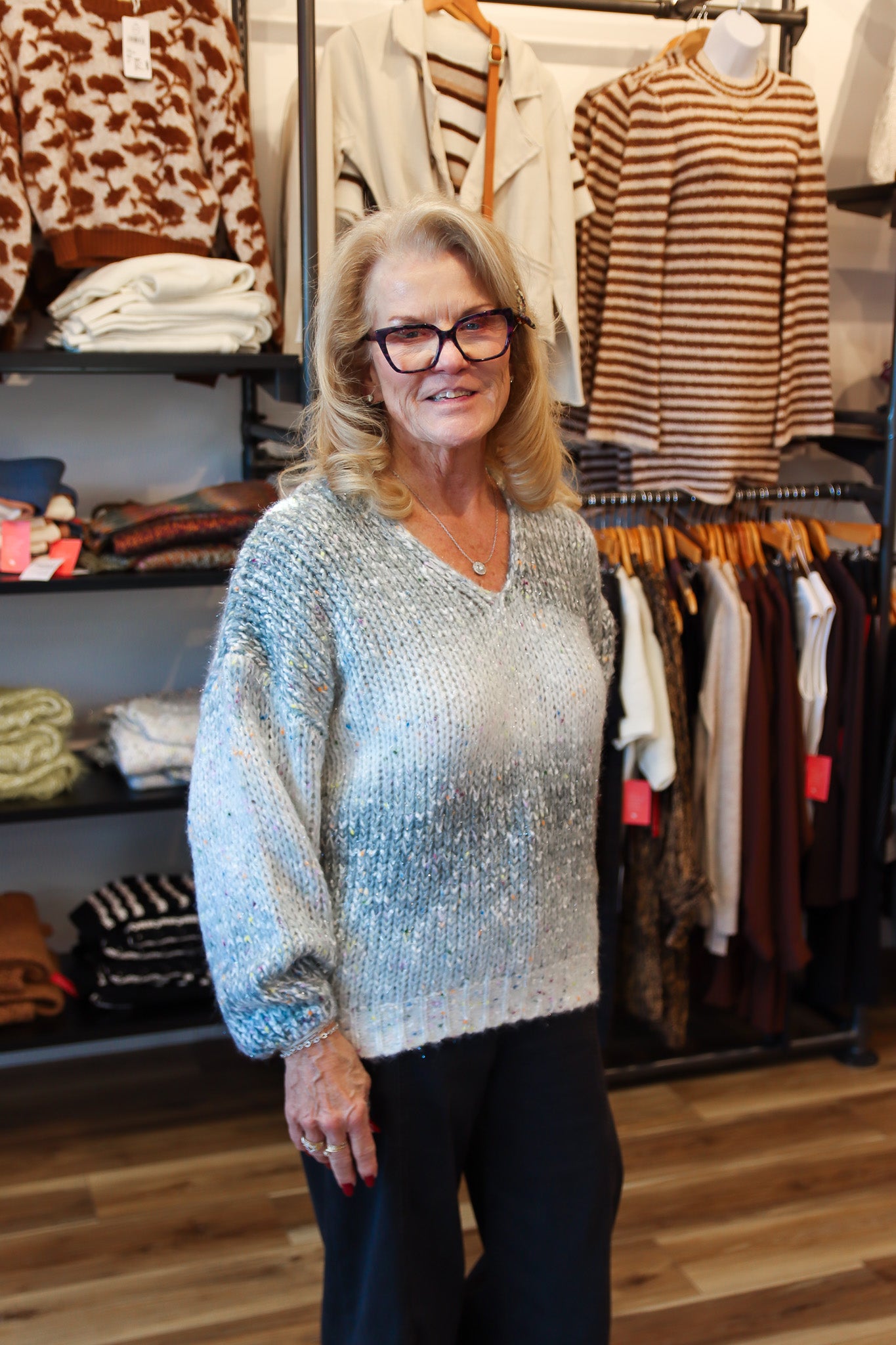 The Apricot Tinsel & Fleck V-Neck Fisherman Jumper is a cozy, festive knit perfect for chilly days. Crafted from soft, textured yarn with subtle tinsel and fleck details, it features a flattering V-neckline and classic fisherman-style stitching. Its relaxed fit makes it ideal for layering over jeans, skirts, or leggings. A warm, stylish jumper that adds seasonal sparkle and timeless charm to your wardrobe.