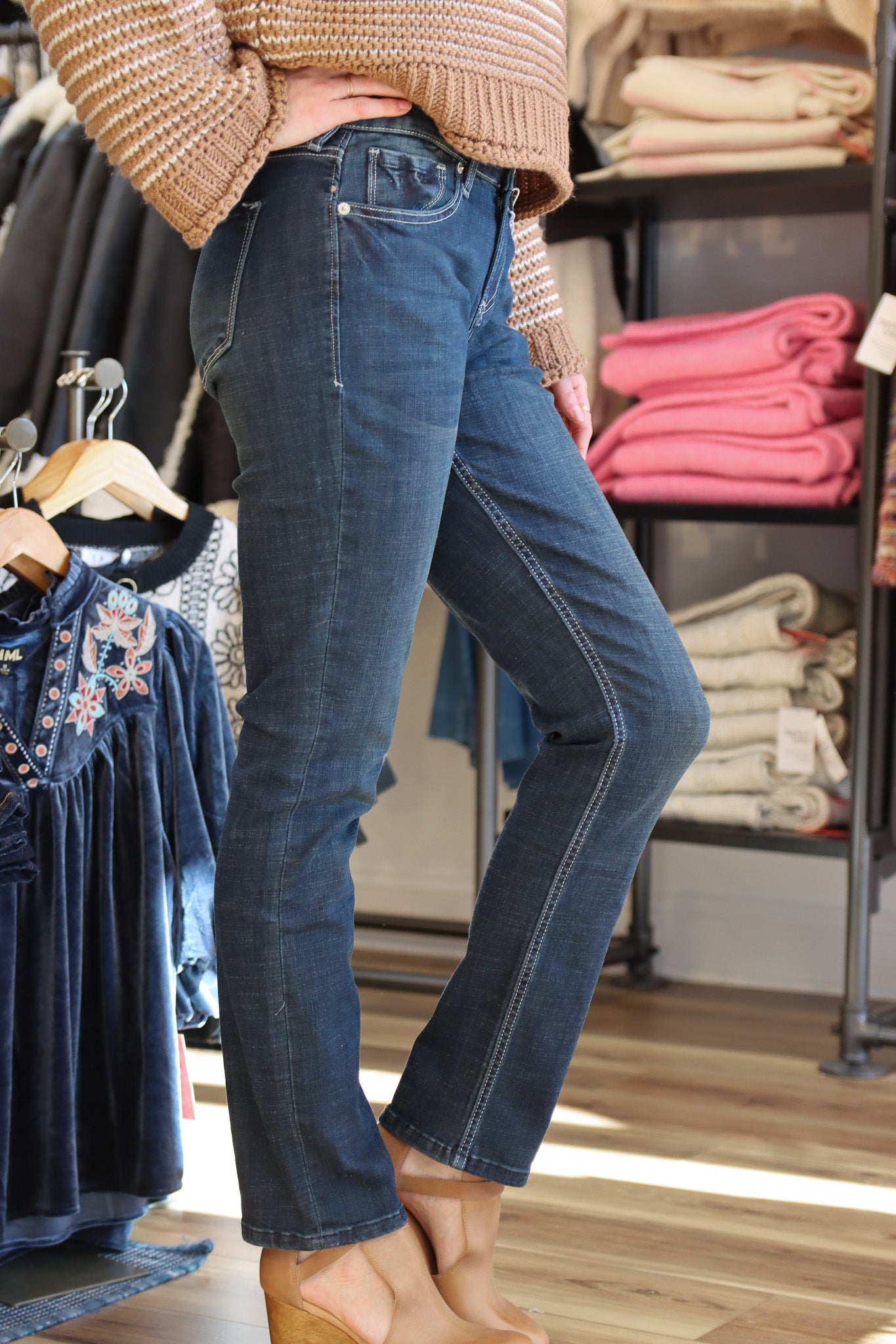 The Blaire Denim is a timeless wardrobe staple with a modern edge. Crafted from high-quality, durable denim, it offers a flattering fit and versatile silhouette that works for casual or dressed-up looks. Classic styling meets contemporary comfort, making it perfect for pairing with tees, blouses, or sweaters. A go-to piece that combines effortless style, durability, and everyday wearability.