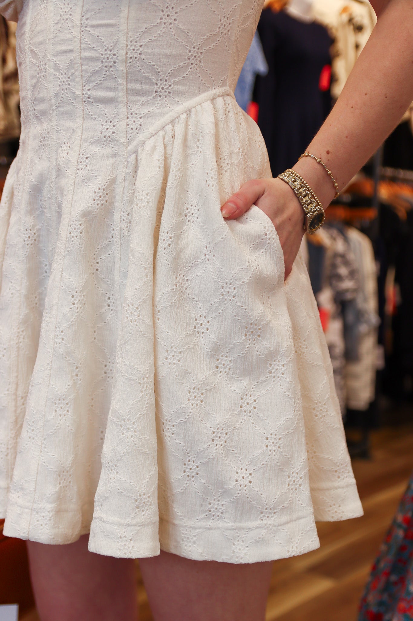 Effortlessly chic and undeniably flattering, the Free People "Can't Help It" Mini features a structured corset-style bodice that cinches and sculpts your silhouette. The flowing A-line skirt provides graceful movement and comfort, while the smocked back detail adds a touch of texture and visual interest. Crafted from a premium blend of 98% polyester and 2% elastane, this mini dress offers the perfect balance of stretch and structure for all-day wear. A versatile piece that transitions seamlessly from day to night. Fits true to size.