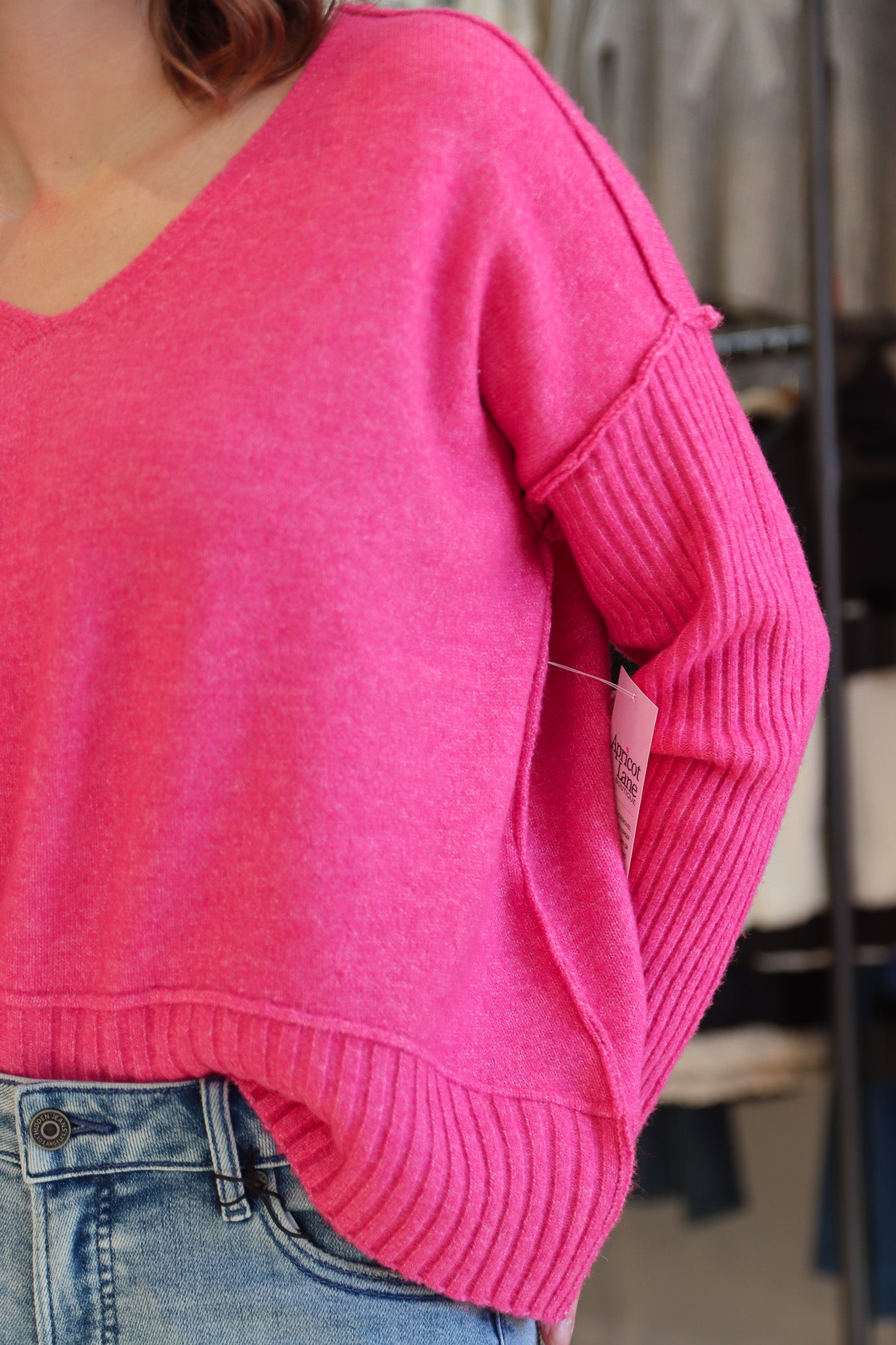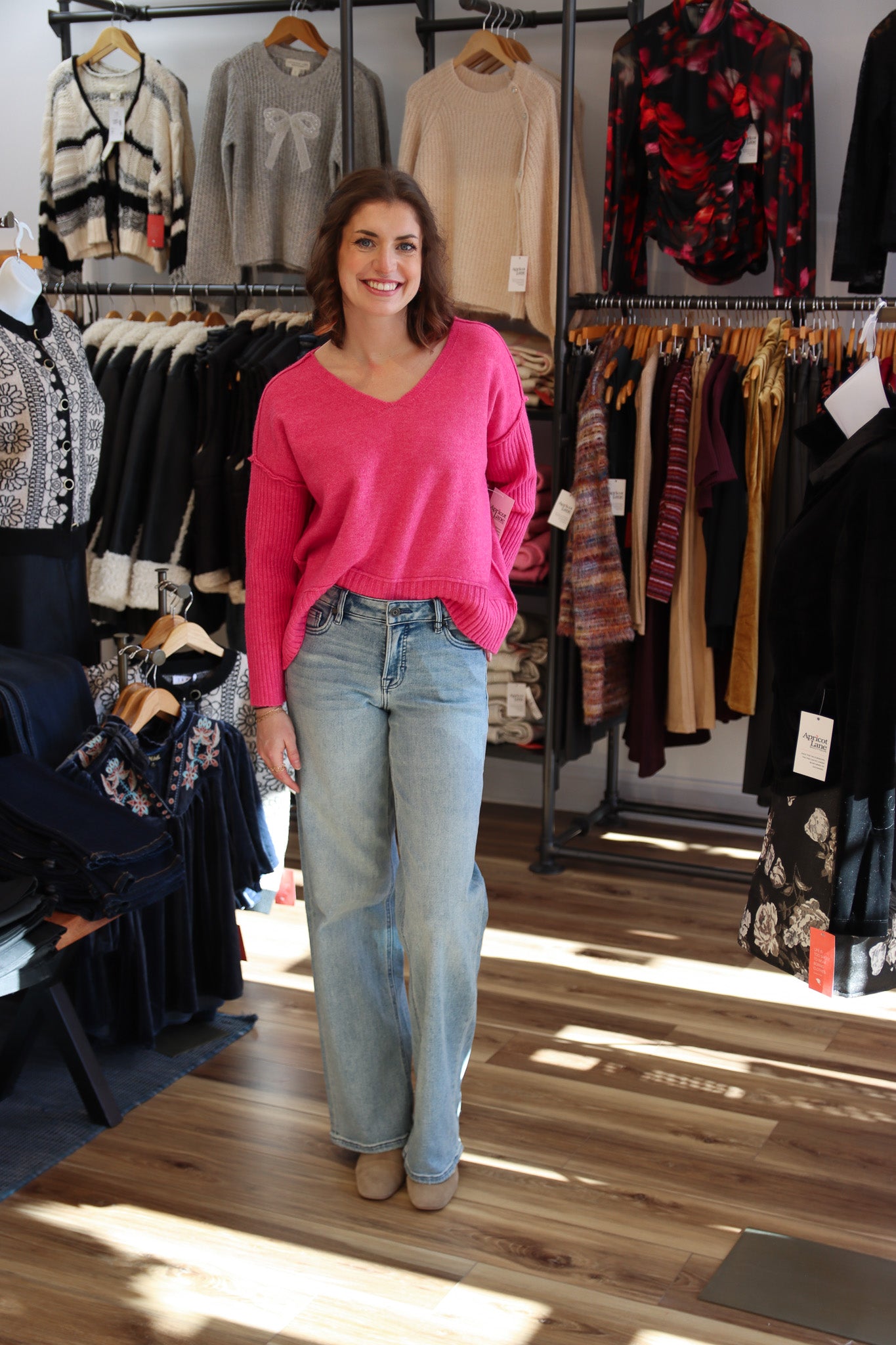 Bold, bright, and effortlessly feminine, the Clarette Hot Pink V-Neck Sweater adds a vibrant pop to any wardrobe. Crafted from a soft, cozy knit, it features a flattering V-neckline and a relaxed yet polished silhouette that’s easy to dress up or down. Pair it with denim, trousers, or skirts for a cheerful, modern look that brings warmth, comfort, and standout style to any day.