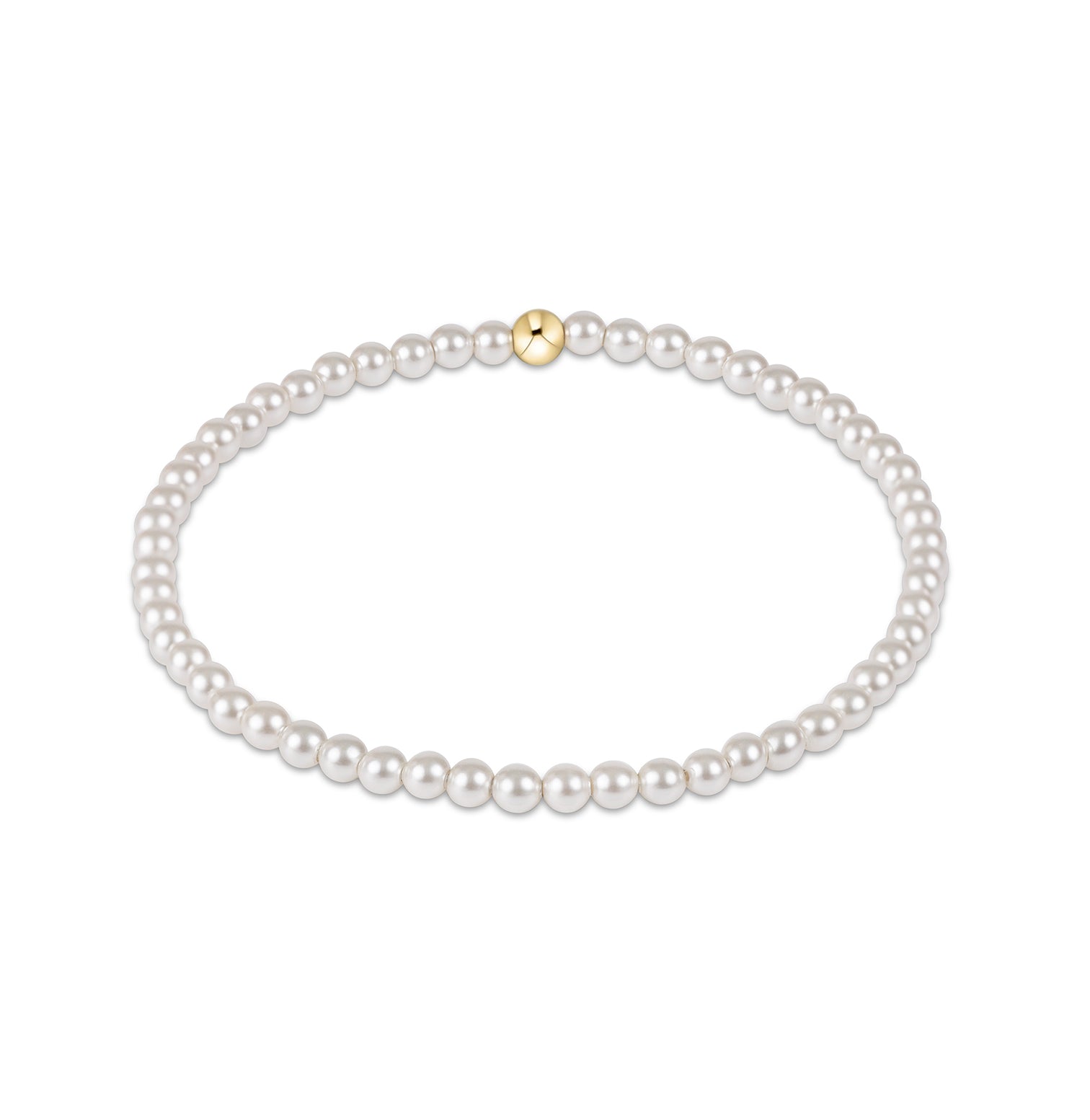 Crafted with 4mm pearl beads, this bracelet offers effortless elegance and everyday durability. Hand-beaded on high-performance elastic, it features a gentle stretch for easy roll-on, roll-off comfort. Designed for worry-free wear—sleep, shower, and sweat in it without hesitation. Now available in an extended 7.25" size for larger wrists. Perfect for stacking with your favorite bracelets for a layered look.