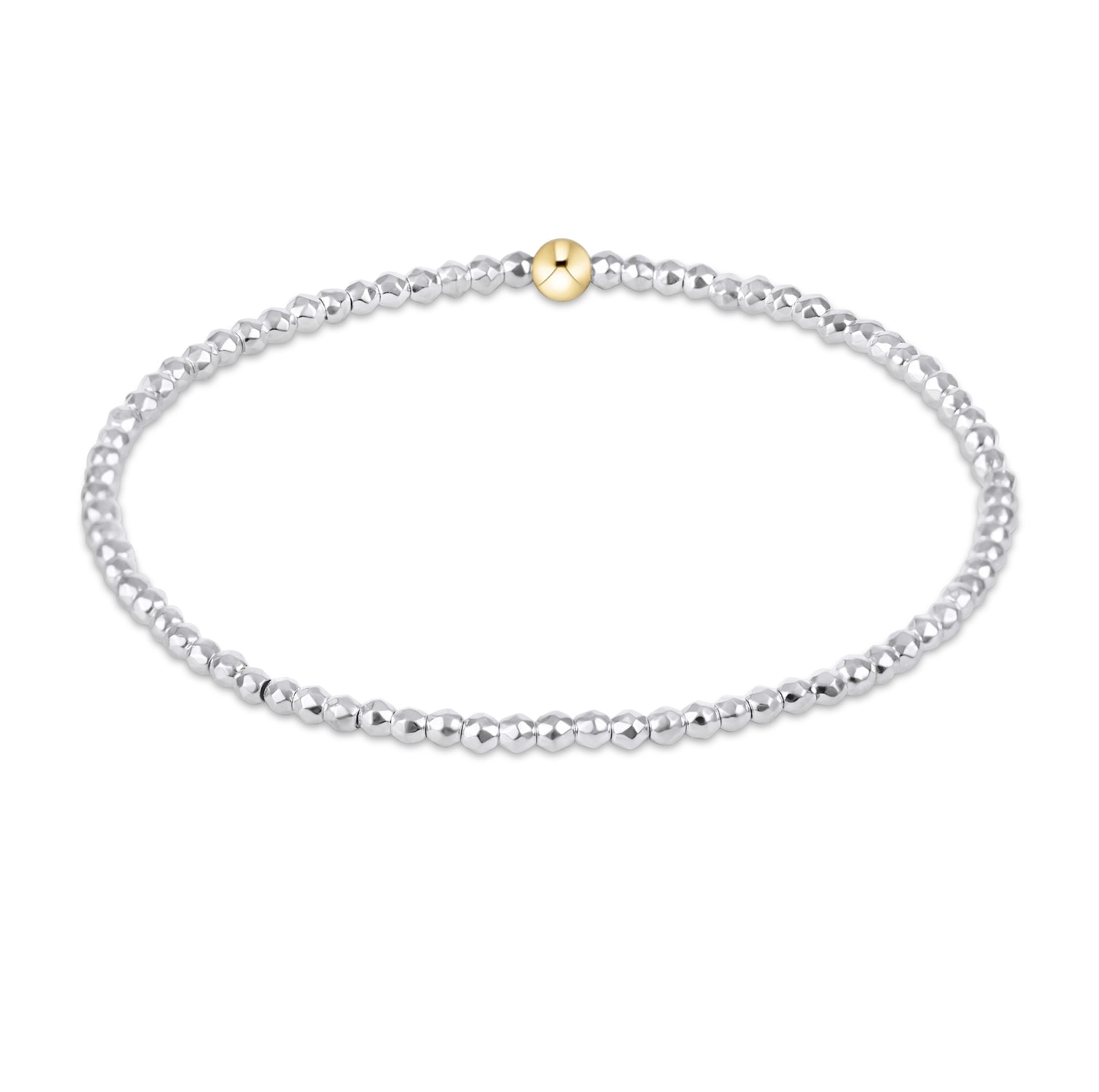 Your classic, reliable go-to bracelet—now shimmering with bright silver faceted hematite beads. Made with 2mm beads and hand-beaded on high-performance elastic for a comfortable, slight stretch that easily rolls on and off your wrist. Designed for worry-free wear—sleep, shower, and sweat in it. Comfortably fits wrists up to 6.75". Perfect for stacking with all your favorite bracelets.