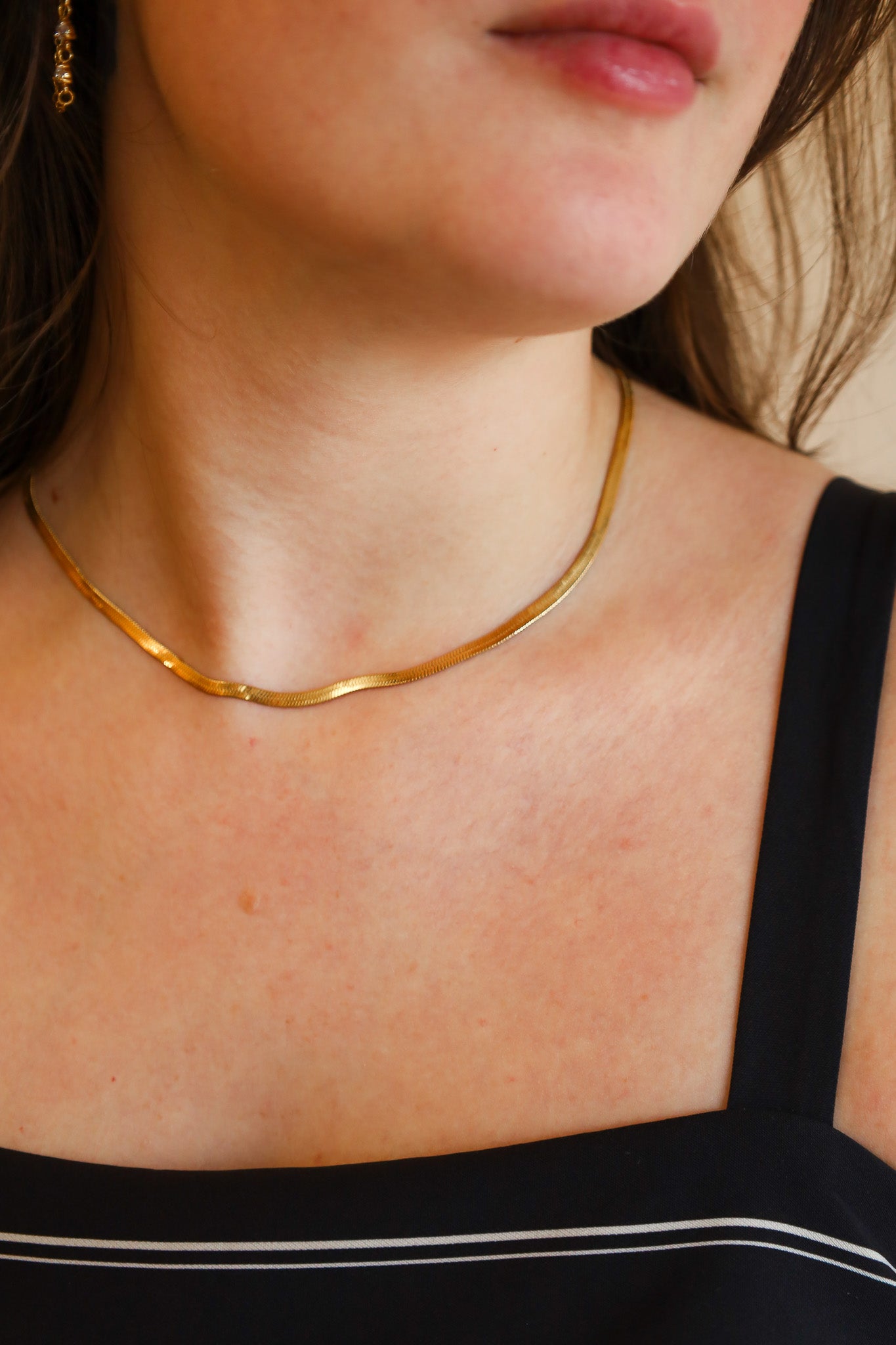 Elevate your everyday elegance with this timeless herringbone necklace crafted in luxurious 18k gold. The classic interlocking pattern creates a sophisticated silhouette that pairs effortlessly with any outfit. Built to last, this piece is backed by a lifetime warranty and features water-resistant construction, ensuring your investment remains beautiful through years of wear. A versatile staple that transcends trends.