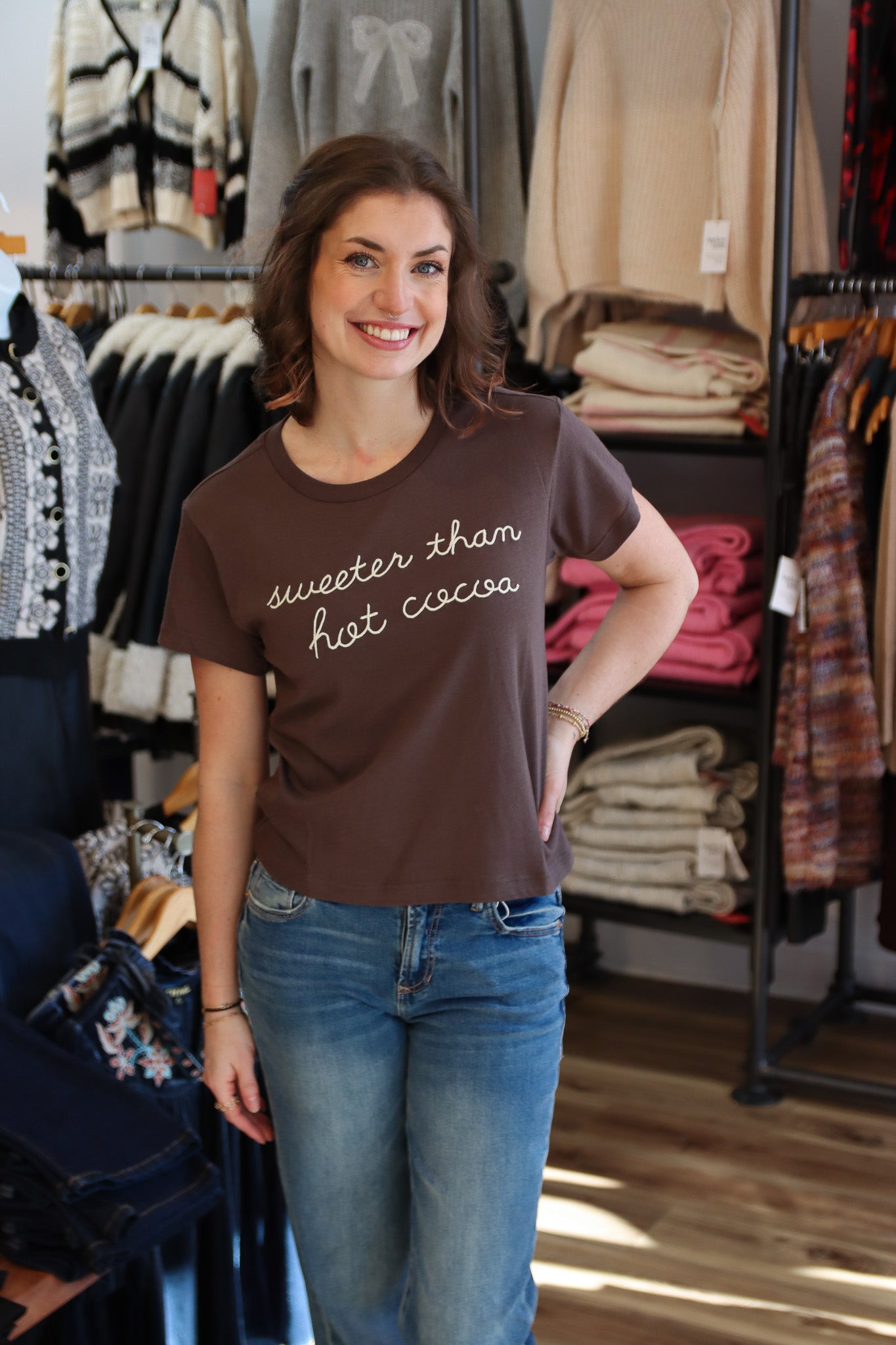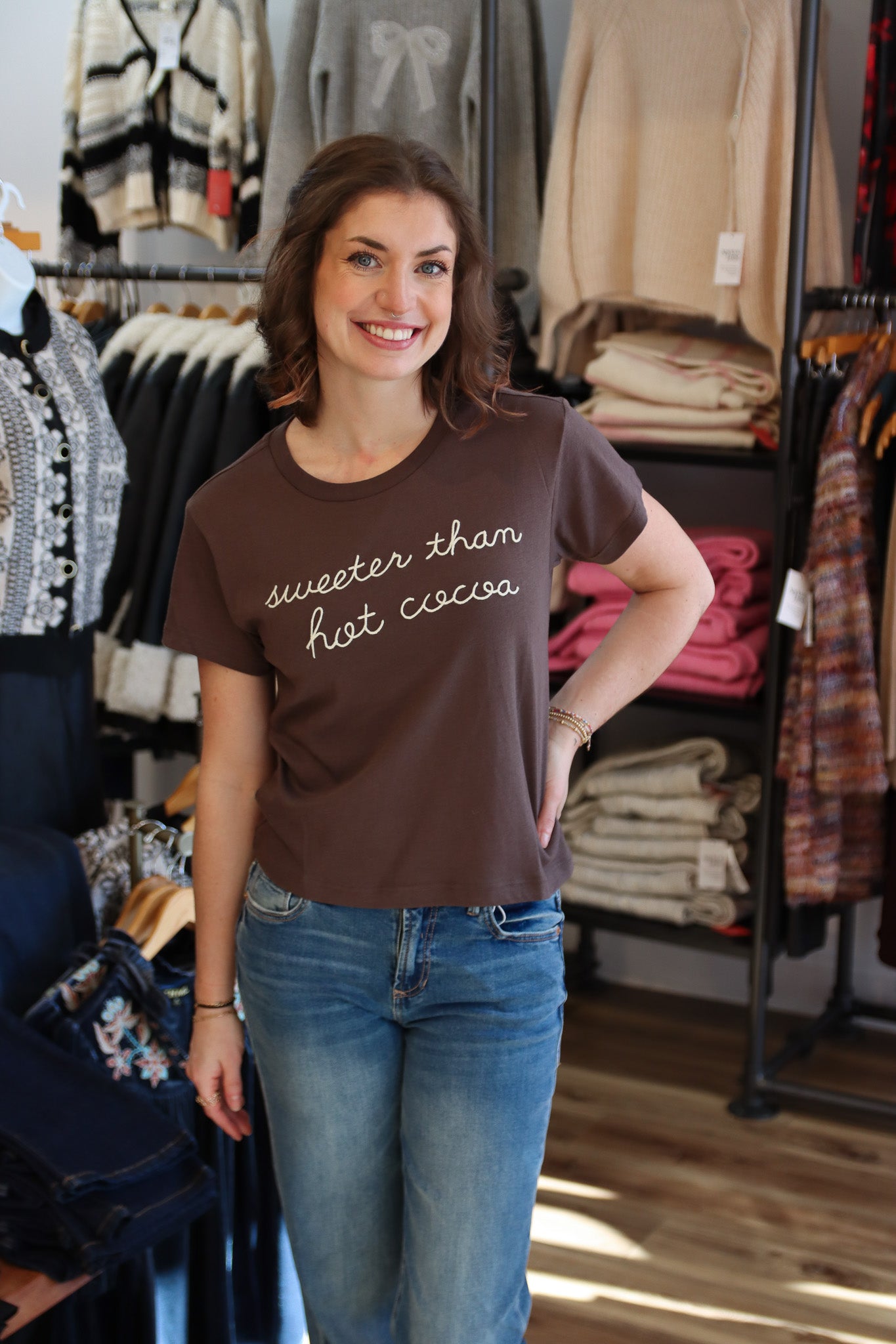 The Hot Cocoa Tee is a cozy, casual essential with a playful, warm-weather vibe. Crafted from soft, breathable fabric, it offers a relaxed fit for all-day comfort. Its charming design and versatile style make it perfect for pairing with jeans, shorts, or skirts. A fun, effortless piece that brings a touch of warmth and personality to your everyday wardrobe.
