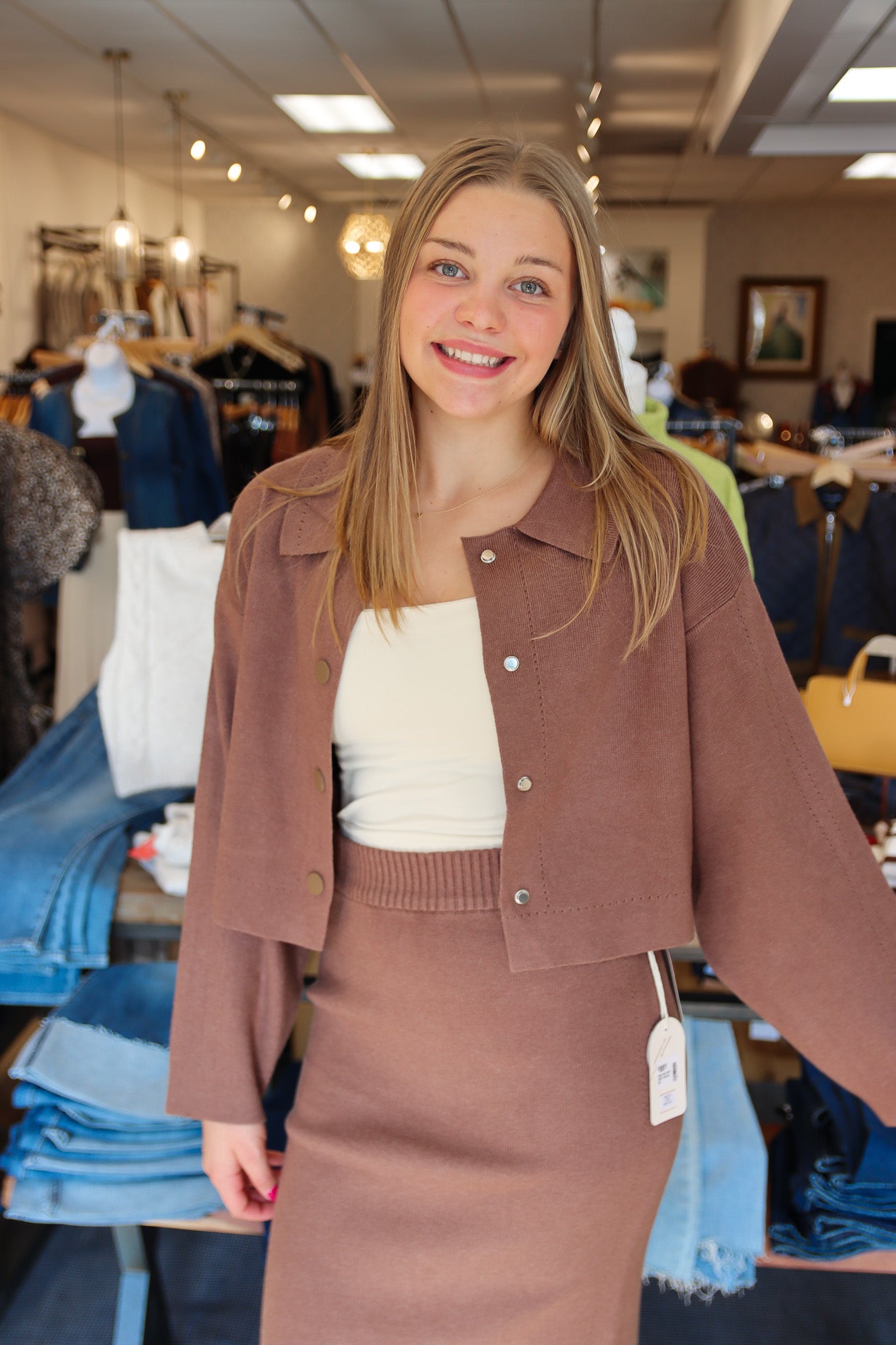 Chic, versatile, and effortlessly polished, the Issa Midi Knit Skirt is a modern wardrobe essential. Crafted from soft, stretchy knit, it features a flattering high-rise waist and a streamlined midi silhouette that moves gracefully. Perfect for pairing with sweaters, blouses, or cropped tops, it transitions seamlessly from casual days to evening outings, offering timeless elegance with comfortable, all-day wearability.