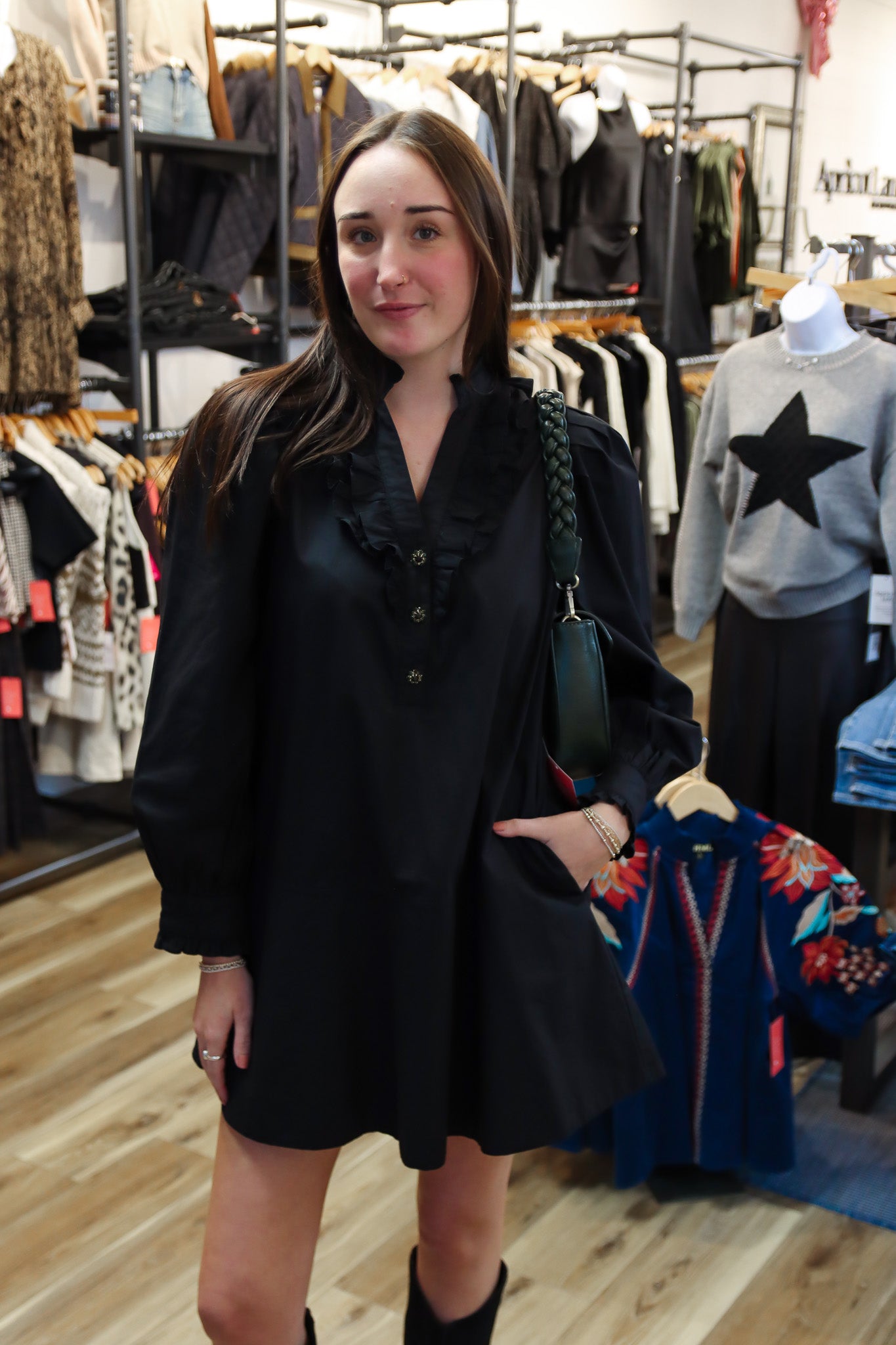 RUFFLED BUTTON DETAIL MINI DRESS